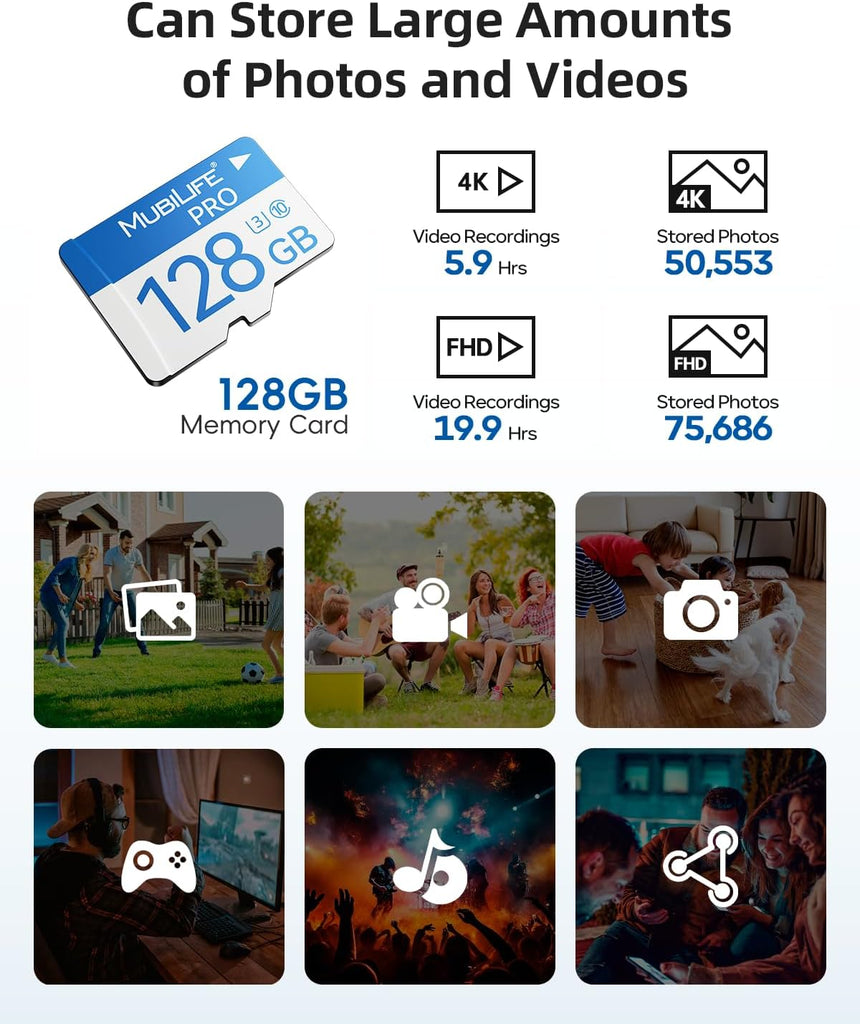 ❗MUBILIFE 128GB SD Card for Home Security Cameras with High Storage Capacity